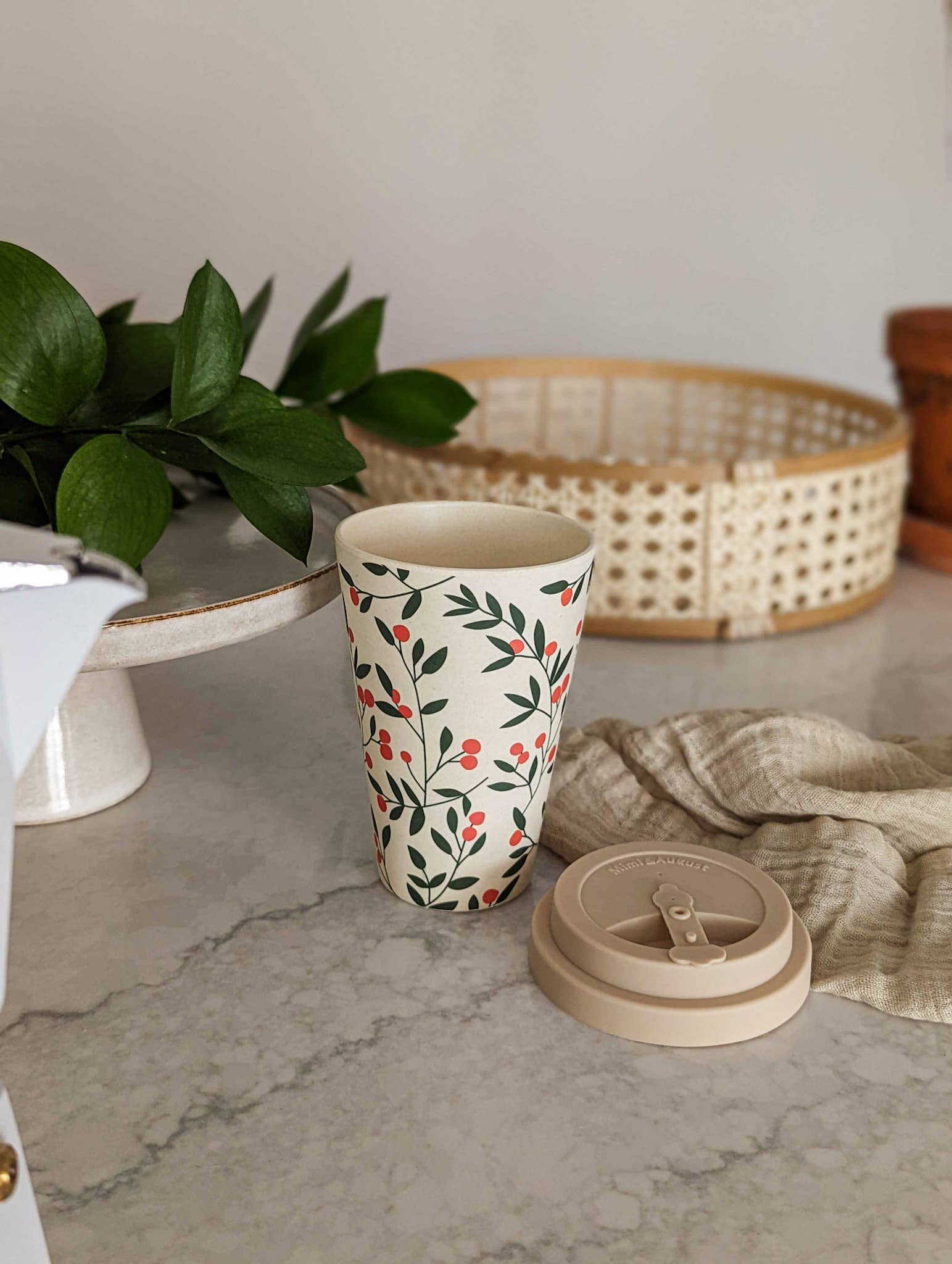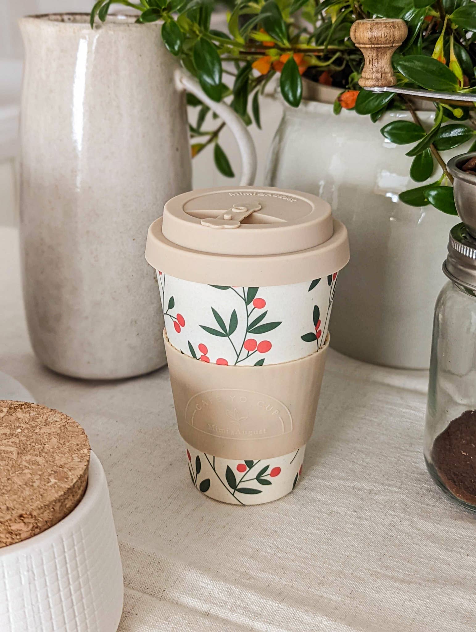 Fully recyclable silicone lid & sleeve.
