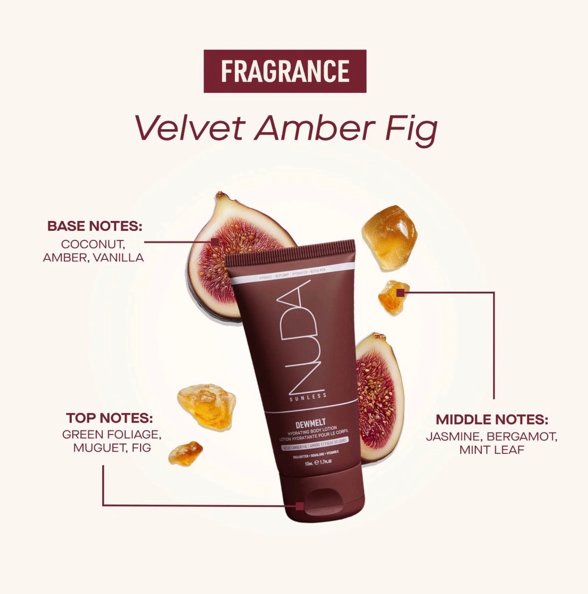 Travel Size (50ml) Body care products including DewPolish Body Exfoliant, DewCleanse Body Wash and DewMelt Hydrating Body Lotion.