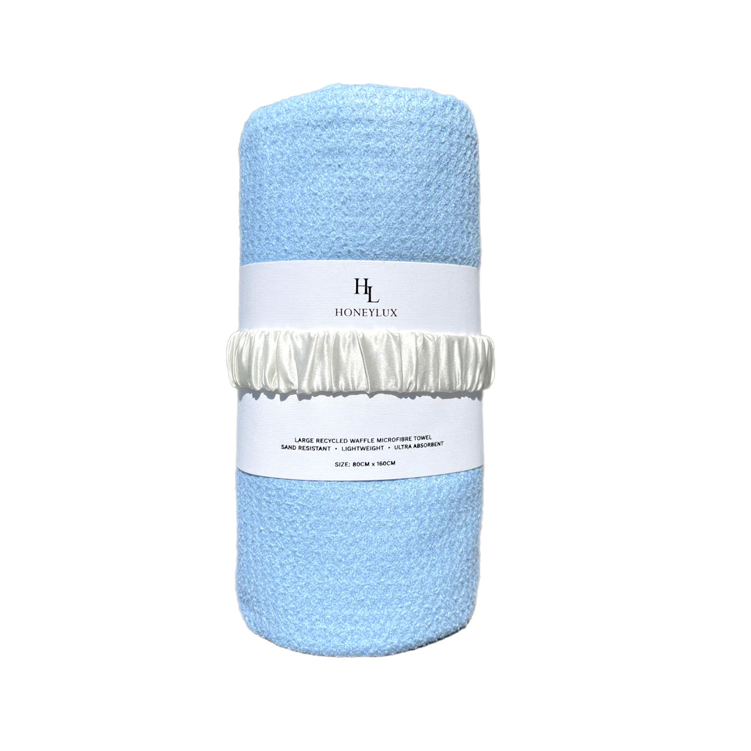 We’re proud to maintain our sustainability standards and use recycled microfibre. Each towel comes with a luxury silk band that can be used for travel or your hair!