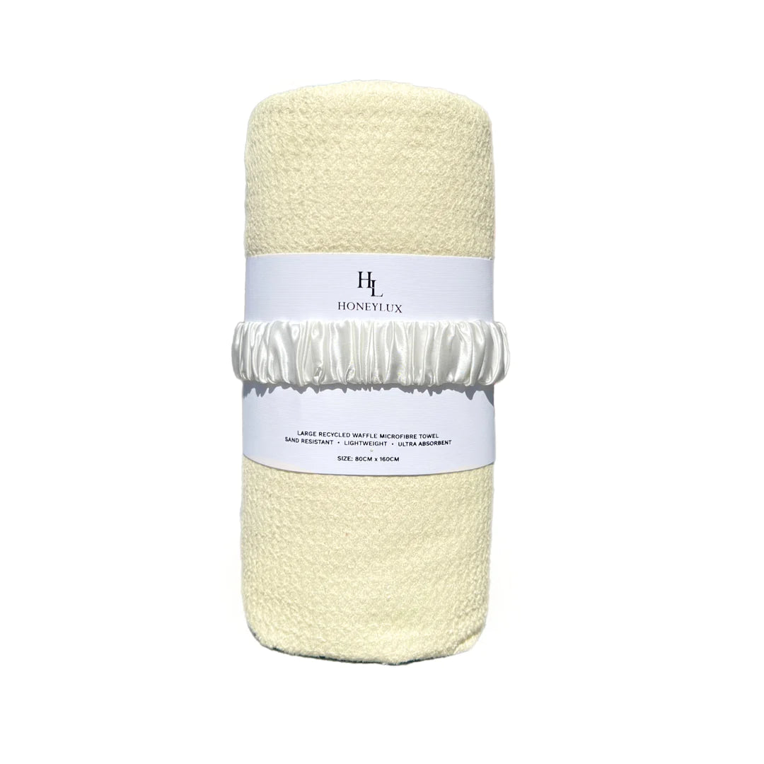 We’re proud to maintain our sustainability standards and use recycled microfibre. Each towel comes with a luxury silk band that can be used for travel or your hair!