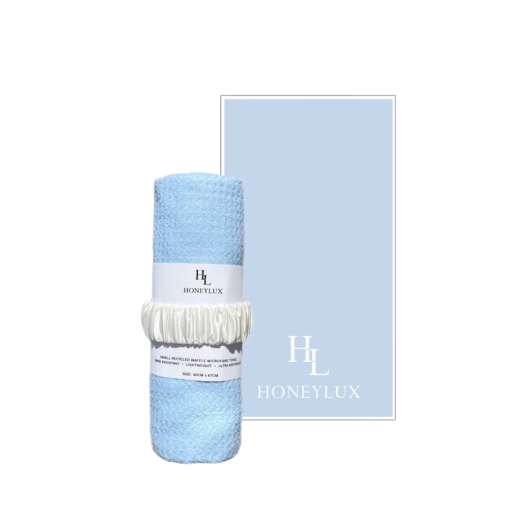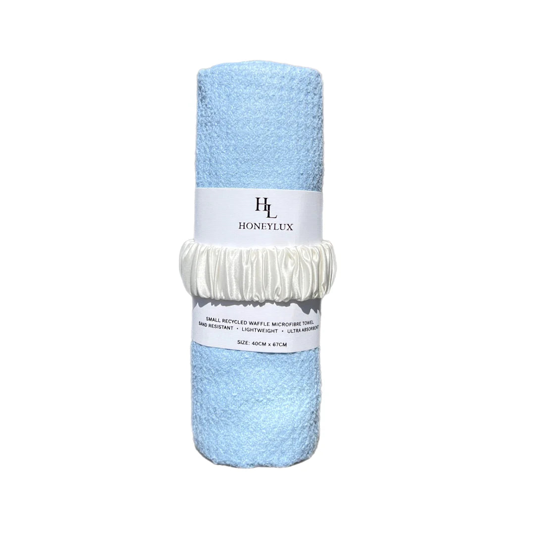 We’re proud to maintain our sustainability standards and use recycled microfibre. Each towel comes with a luxury silk band that can be used for travel or your hair!