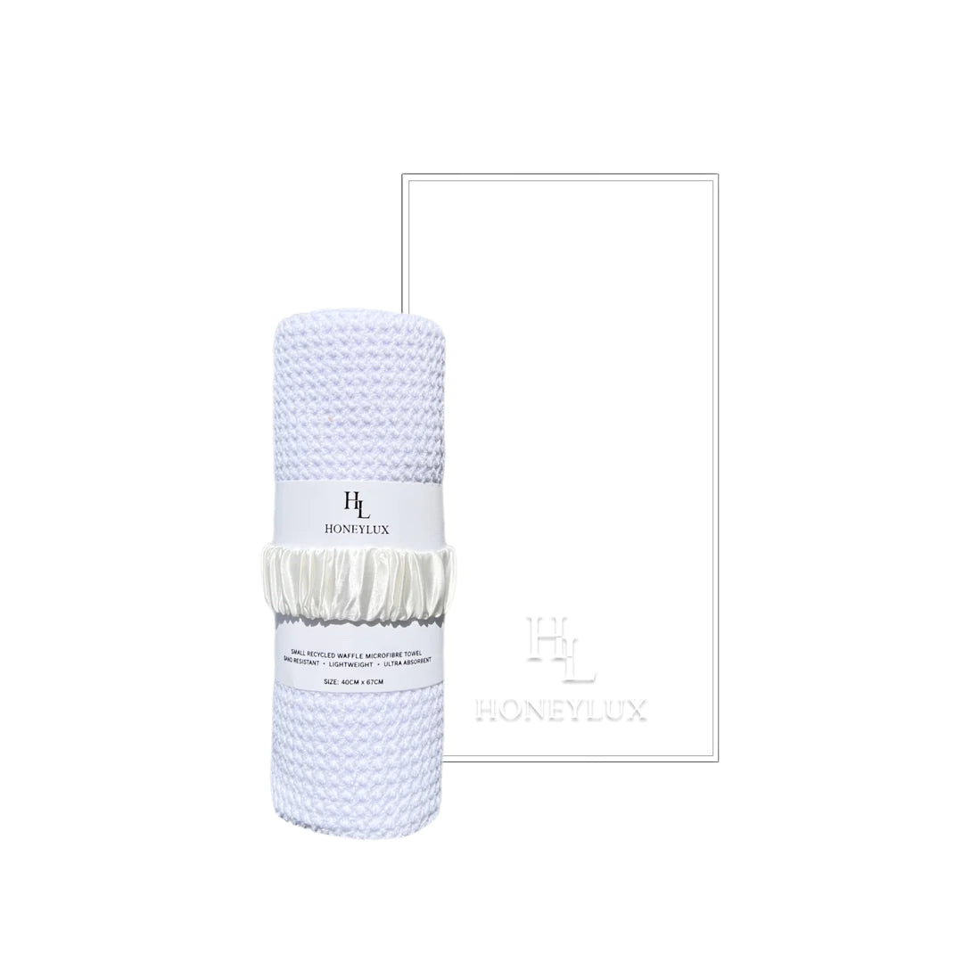 We’re proud to maintain our sustainability standards and use recycled microfibre. Each towel comes with a luxury silk band that can be used for travel or your hair!